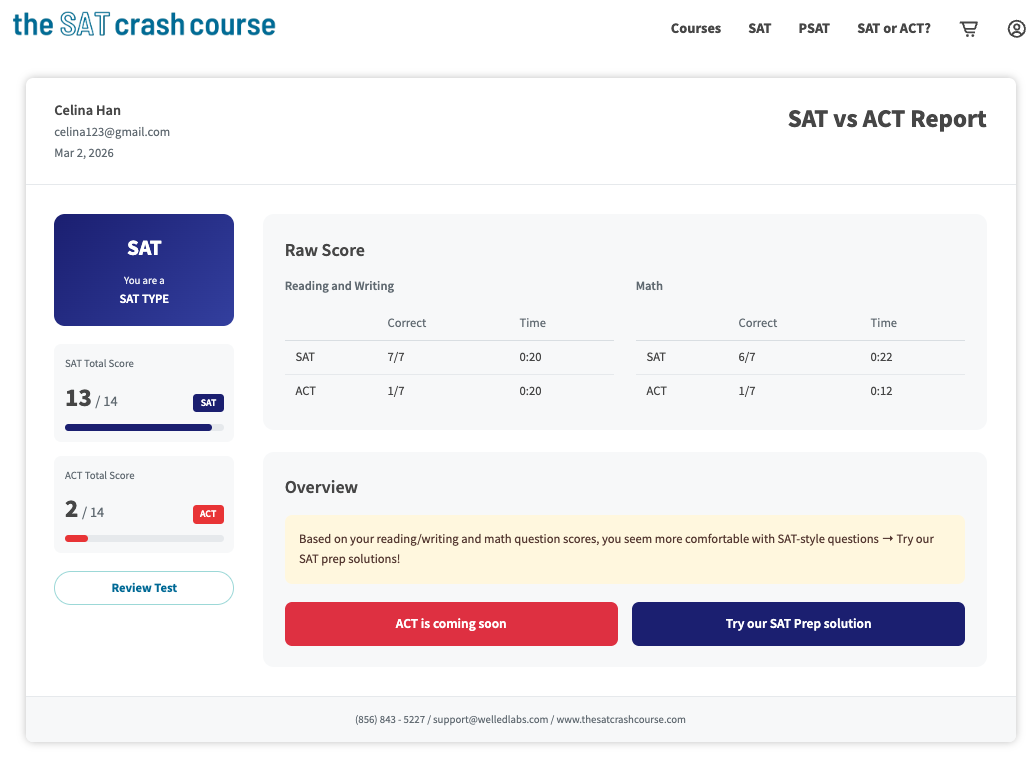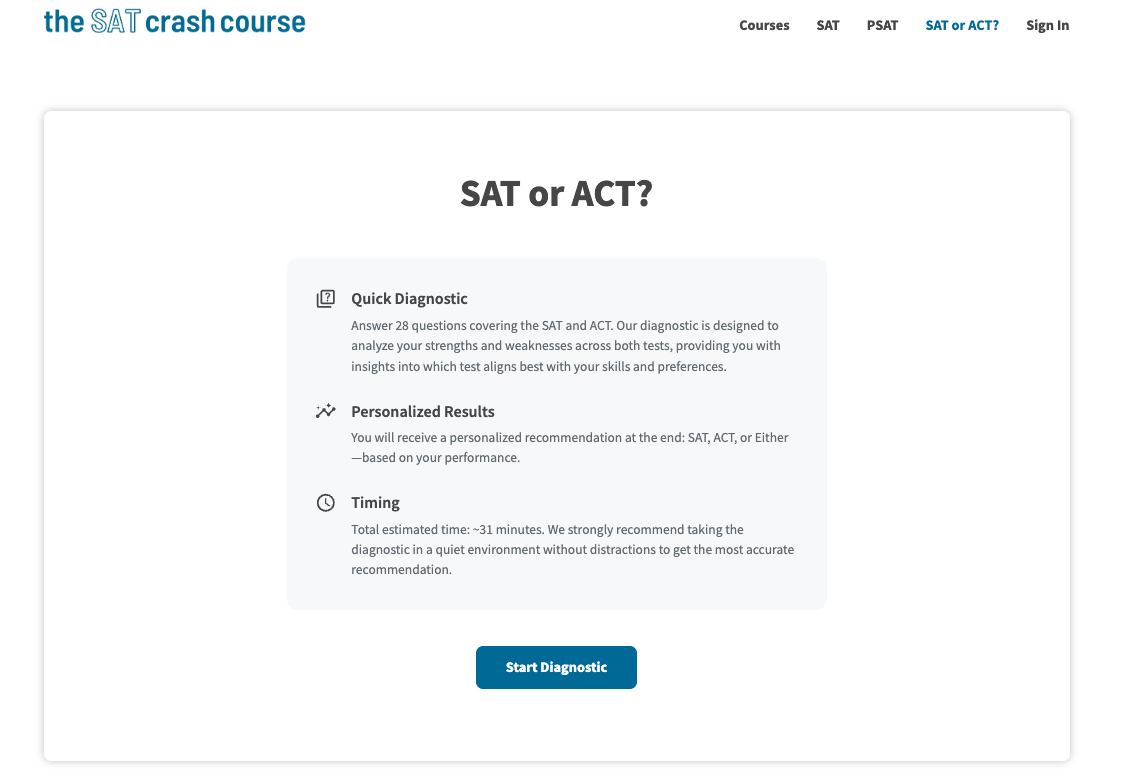 Take Our Free SAT vs ACT Diagnostic (31 Minutes)